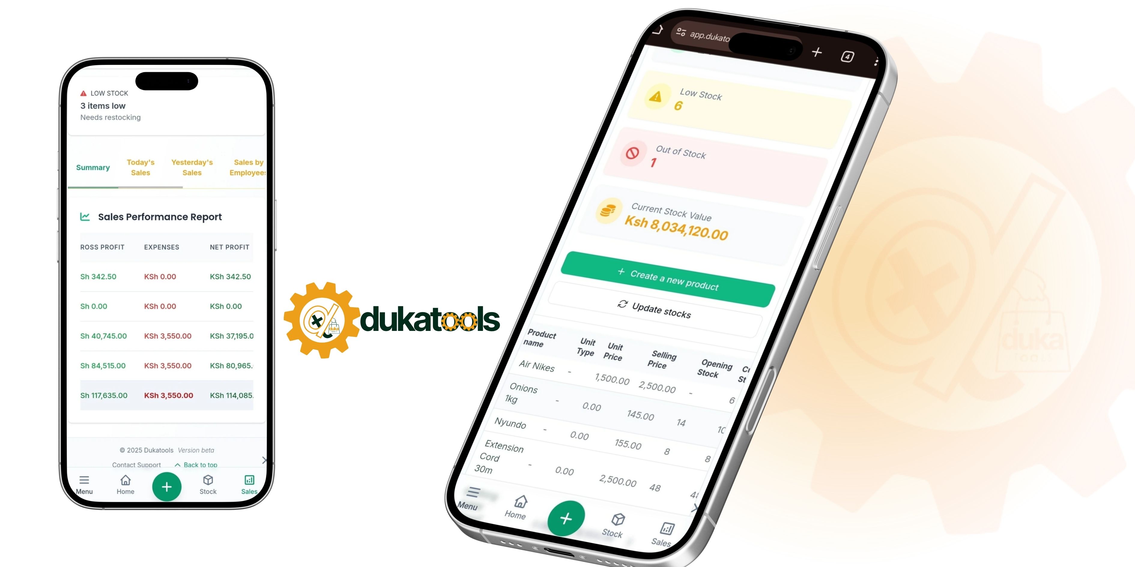 In both cases, remember that the cost of Dukatools is tiny compared to the value of the time saved, sales & stock tracked, organized shop reports available every day, and stress you will save. Kenyan shops that digitize often see increased growth and performance.